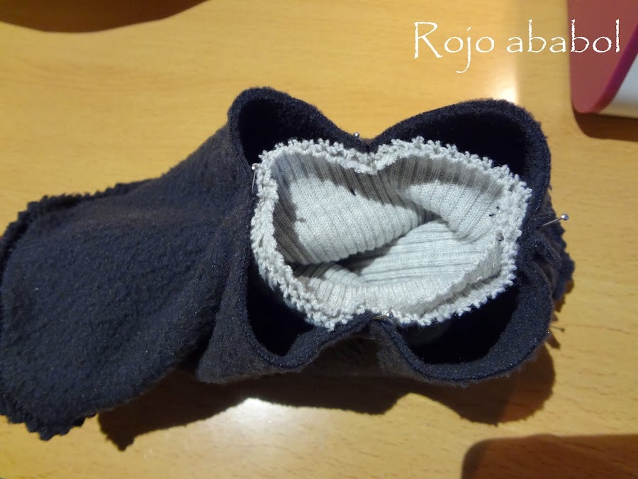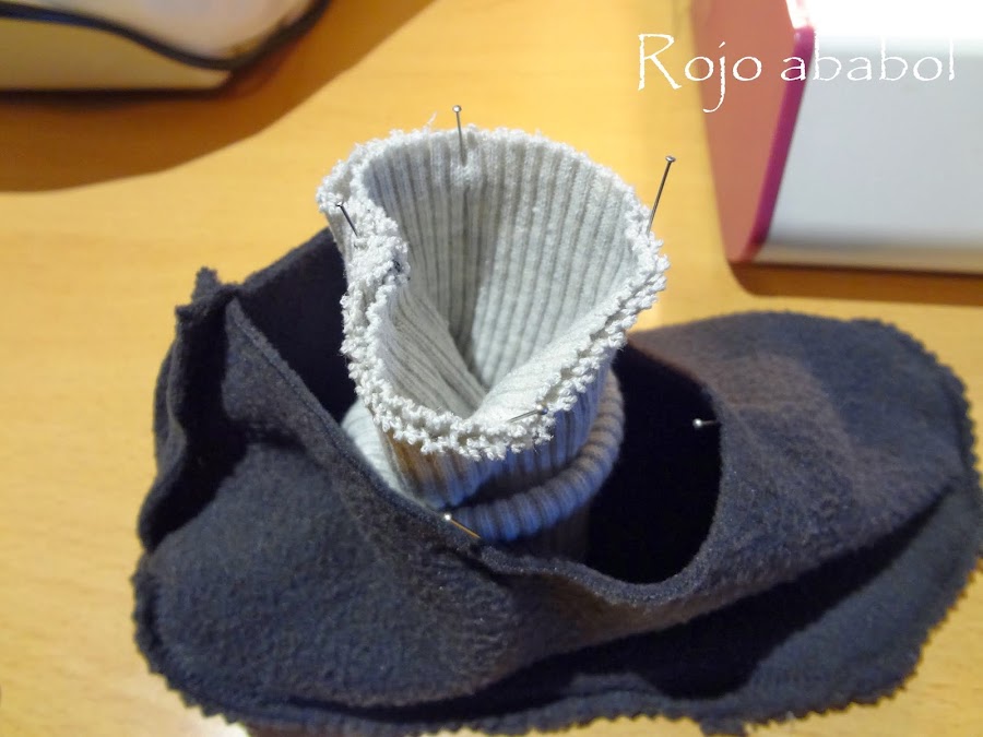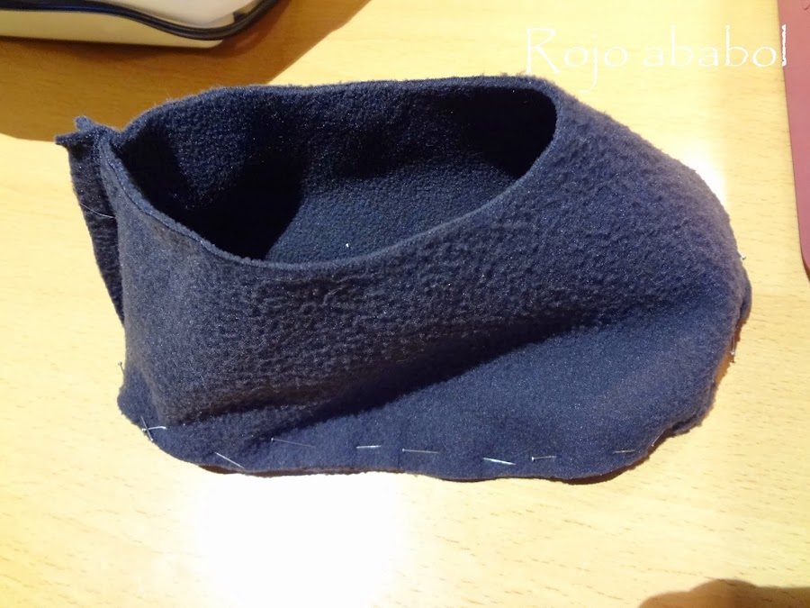 Si se estira mucho el polar que usáis ir ajustando para que quede "clavado" a la suela, veréis que os encaja bien. Cosemos todo alrededor