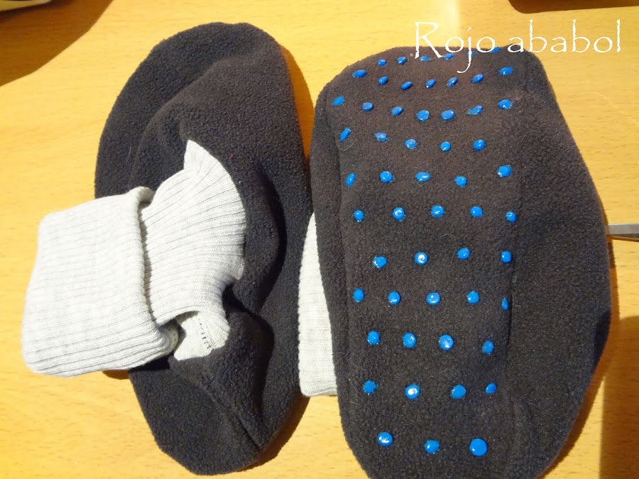 El resultado es una suela con zonas antideslizantes ;) Podríamos haber hecho la suela entera de este material o incluso otro como polipiel o cuero pero no me fío de la respuesta en la costura del polar (algo elástico) con un material rígido y que se pega a la pata...