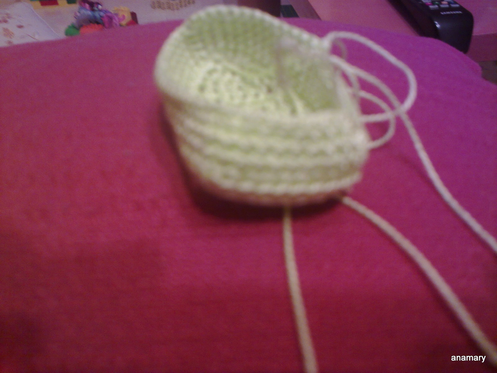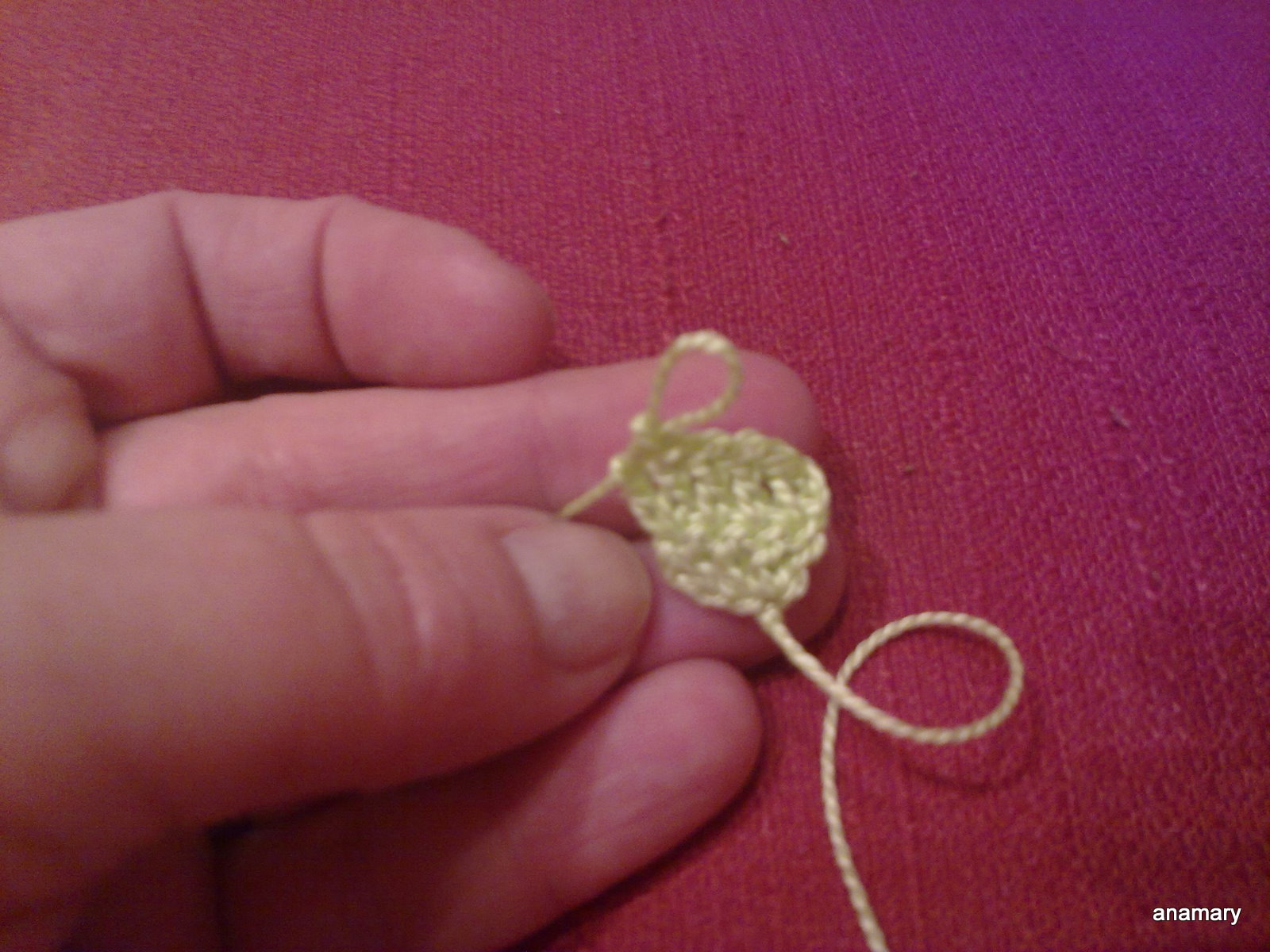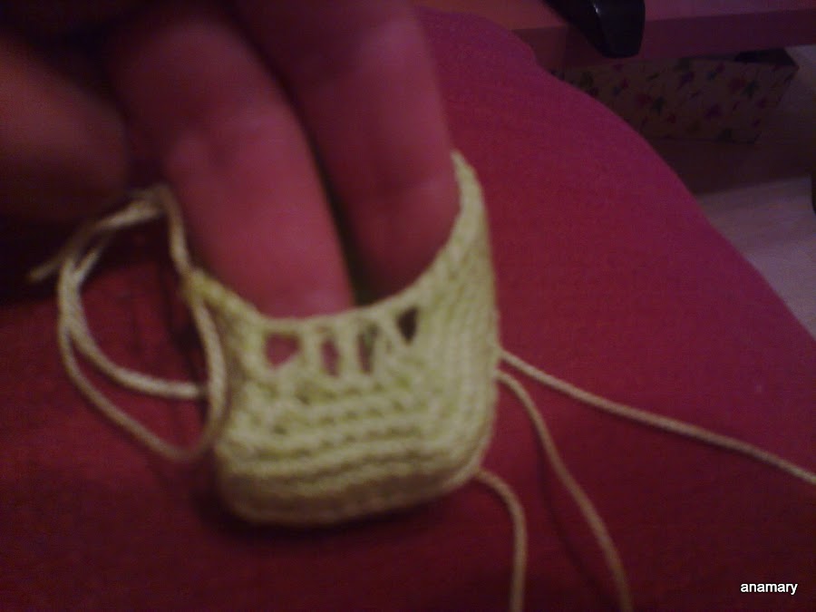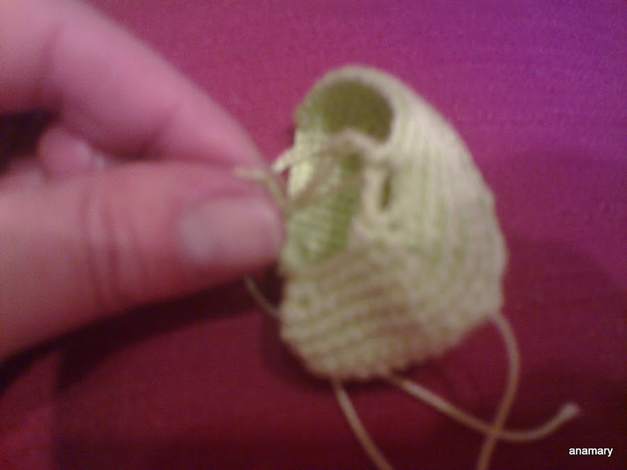 en la foto no se aprecia muy bien,pero hacemos una segunda vuelta toda alrededor pinchando en la hebra de atrás del punto bajo