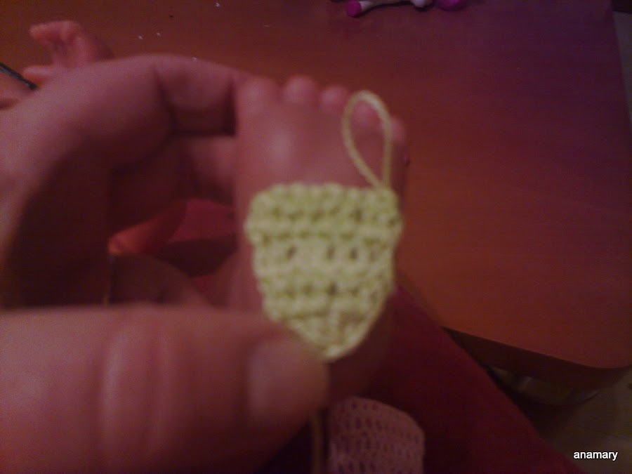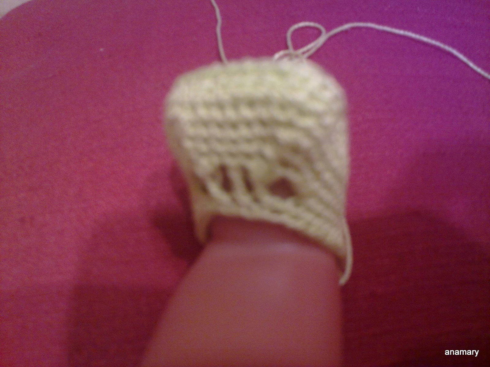 aumentamos en una vuelta si y en otra no,hasta tener el zapatito a la altura de los dedos de la muñeca