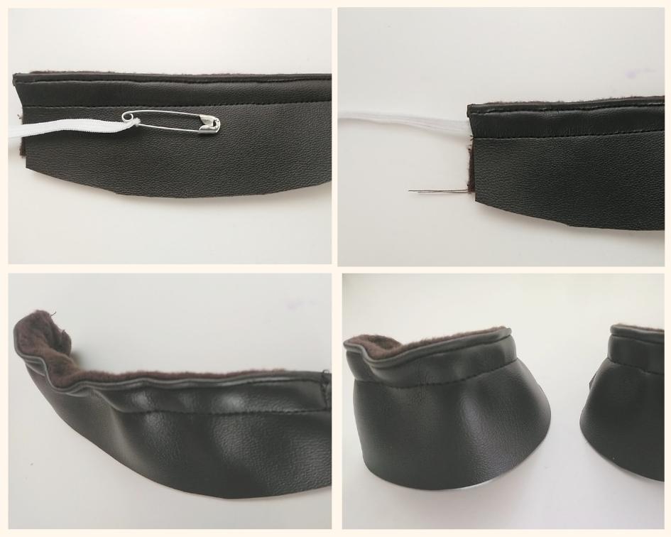 Con el forro unido a la parte de atrás del zapato, hacemos una segunda costura recta de un centímetro de largo, que es por donde pasamos el elástico: