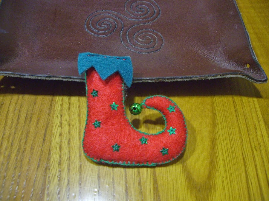 Zapato de elfo rojo con detalles en verde en versión imán. Disponible en la versión que más os guste y con vuestra combinación de colores favorita.