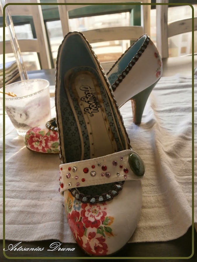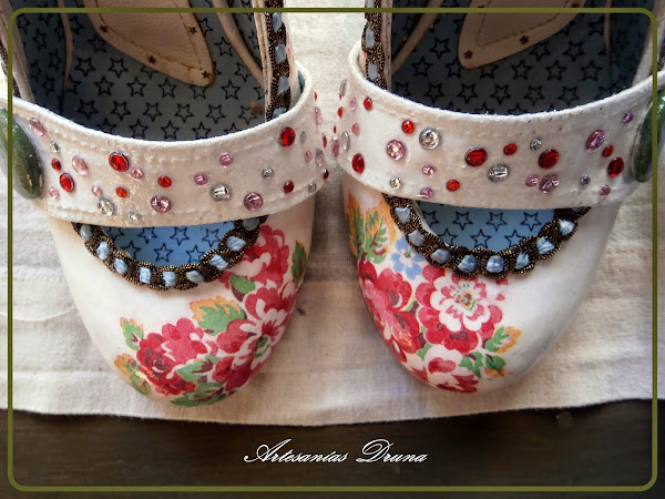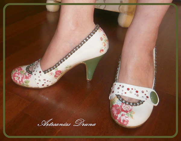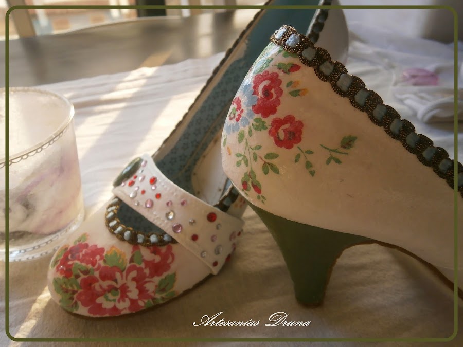 Llevaba tiempo dándole vueltas a una idea, pero no sabía si se podría llevar a cabo o no, quería probar la técnica del decoupage pero sobre zapatos. Tenía estos botines desde hace unos años que ,no me pongo pero que me da penilla tirar y el otro día, haciendo limpia de zapatos los vi y me dije, mira, ahora o nunca, total, van a la basura así que si no me gusta, o no queda bien, pues tampoco pierd ...
