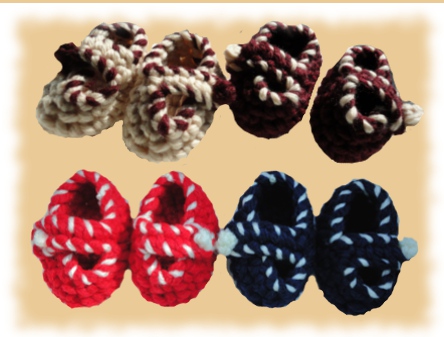 Hoy he terminado este muestrario de zapatos para bebé para lucir en la nueva temporada Otoño-Invierno. Están realizados a punto de crochet con una lana gruesa pero muy suave; así que resultan muy calentitos y cómodos. Se adaptan a la forma del pie del bebé y son muy seguros porque no llevan costuras ni botones. El cierre y botón, es tejido en el mismo material. Pueden realizar su pedido en nuestra tienda en Artesanum, envío a toda España y Exterior. Es un regalo original y económico para esta Navidad.