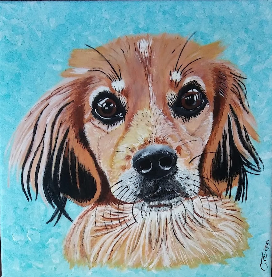 La conocí a la entrada del supermercado, esperando a su ama, e inmediatamente me quedé fascinada por su mirada. Tan chiquitina y con esos ojos tan grandes, tan brillantes que desde el primer momento quise pintar. Para mí los ojos son lo más importante del rostro. Es por donde se asoma el ser que somos a través de la careta de la cara. Se me hace muy incómodo, por ejemplo, hablar con alguien que tenga las gafas de sol puestas, porque necesito mirar a mi interlocutor a la cara, directamente a los ojos. Cuando alguien no te mira a los ojos...malo. No es de fiar o está mintiendo.