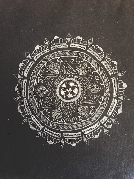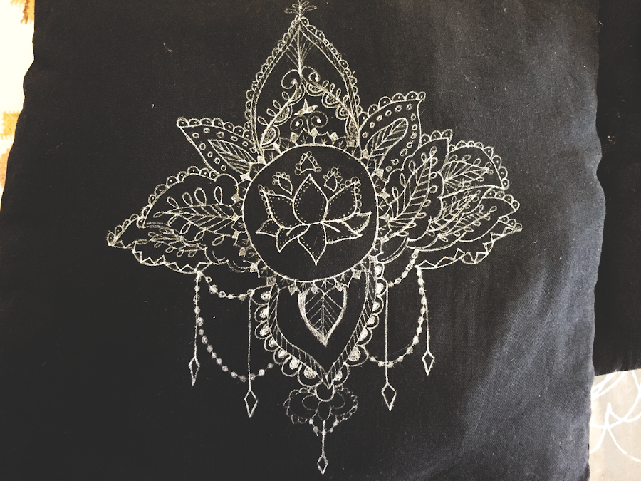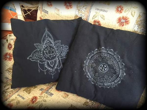 Como tenía unos cojines negros bastantes sosos, decidí hacer algo con esta técnica, utilizando para ello un permanente fino de color blanco.