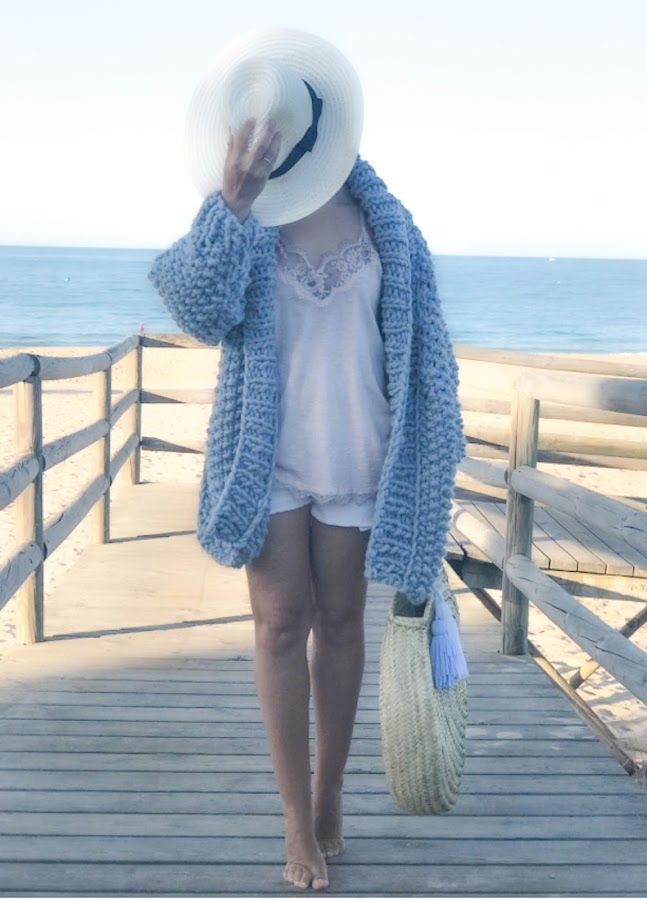 Los que me seguís desde hace tiempo sabéis que tejo en cualquier parte (en una cola, en el metro, en el hospital, en el parque...) por lo que llevarme labor a la playa mientras estoy de vacaciones es lo más placentero que puedo hacer :)) Y no solo me da igual lo que piense la gente, si no que además quiero reivindicar que NO me da calor tejer en plena playa en verano. No es como si me tapara con una manta. Además, como os he dicho otras veces, yo soy de las que compro los abrigos (de cara al otoño) en agosto (de hecho acabo de comprar a mis hijos los plumas y botas tipo UGG para este otoño ja ja ja) y los bikinis en febrero. Me gusta ser previsora :)))